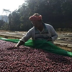 In de zon gedroogd natuurlijk proces. De koffiebessen worden met de hand geplukt door leden van de Hopong-gemeenschap in de vroege uurtjes van de dag. Zodra de inzameling is voltooid, leveren de leden de koffiebessen aan bij de droogstations van Hopong. Bij levering worden de koffiebessen gezeefd en met de hand gesorteerd tot ongeveer 95% bes rijpheid. Volledig rijpe bessen worden vervolgens op verhoogde bedden geplaatst. Langzaam drogen is een prioriteit en de droogtijden variëren van 13-17 dagen, afhankelijk van de weersomstandigheden. Alle kavels zijn per dag gescheiden en de leveringen van alle leden zijn volledig traceerbaar.